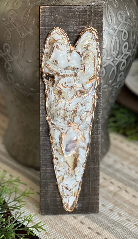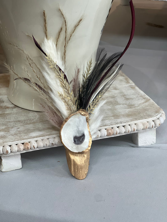 Decoupage and hand painted personalized oyster shell trivet dish/jewelry tray