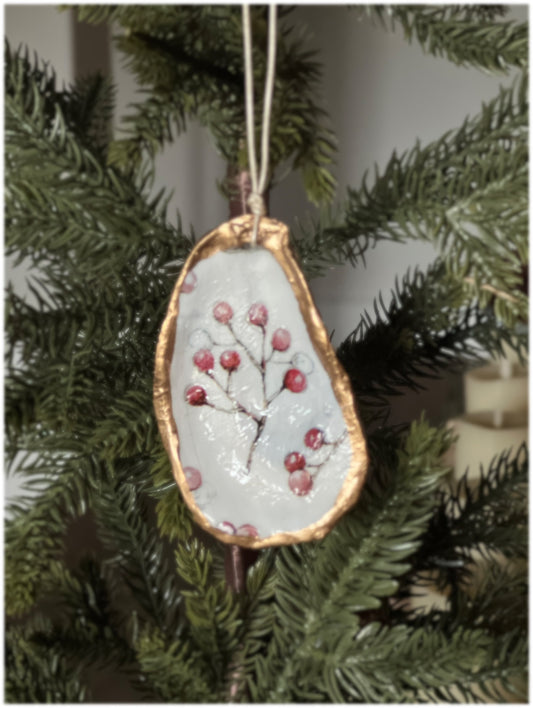Decoupage and hand painted oyster shell trinket dish/jewelry tray