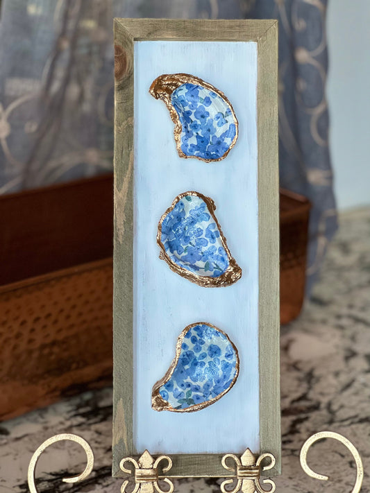 Decoupaged succulent floral Oyster trivet/jewelry tray