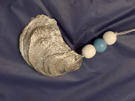 Hand painted blue trim oyster shell ornament