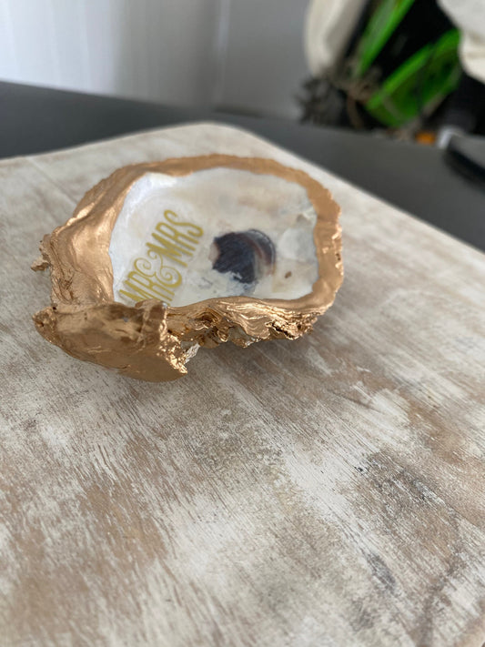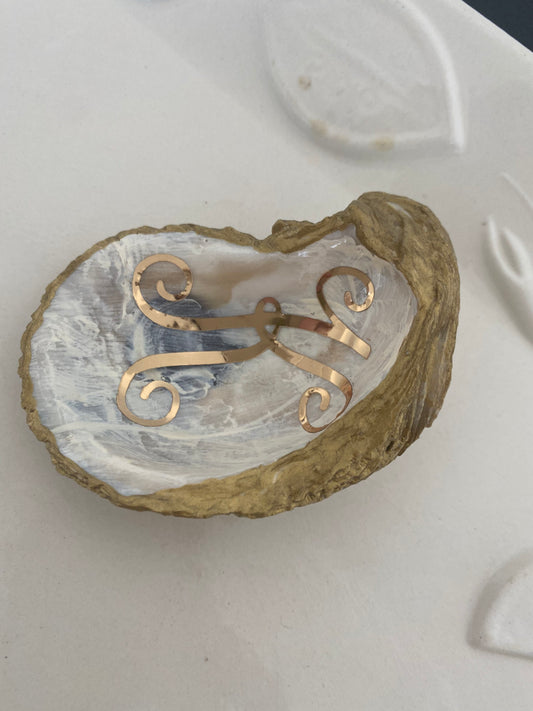 Decoupage and hand painted personalized oyster shell trivet dish/jewelry tray