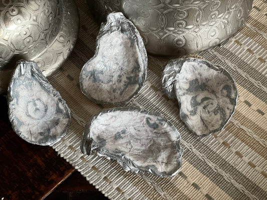 Decoupaged Oyster shell trivet dish/jewelry tray